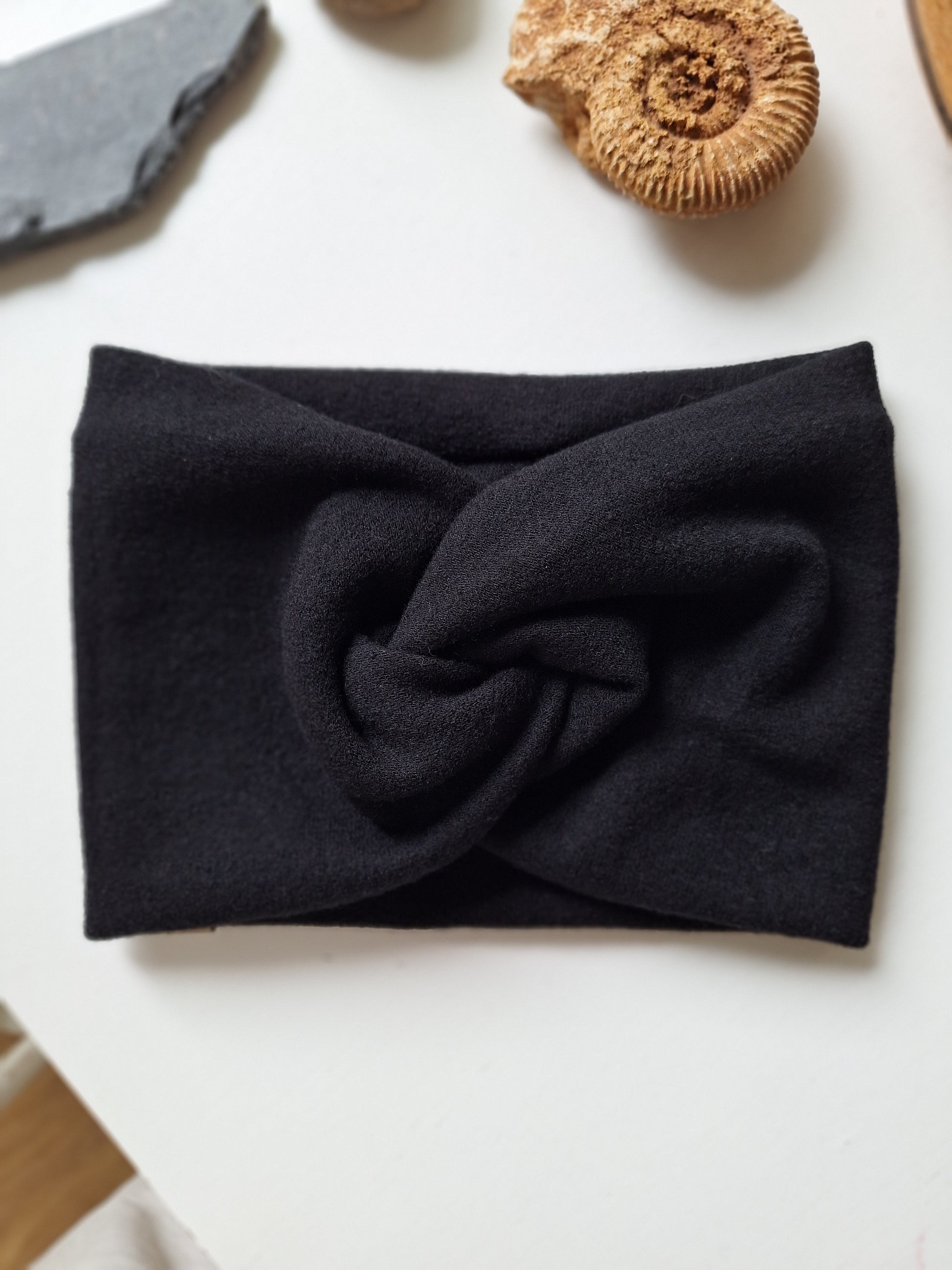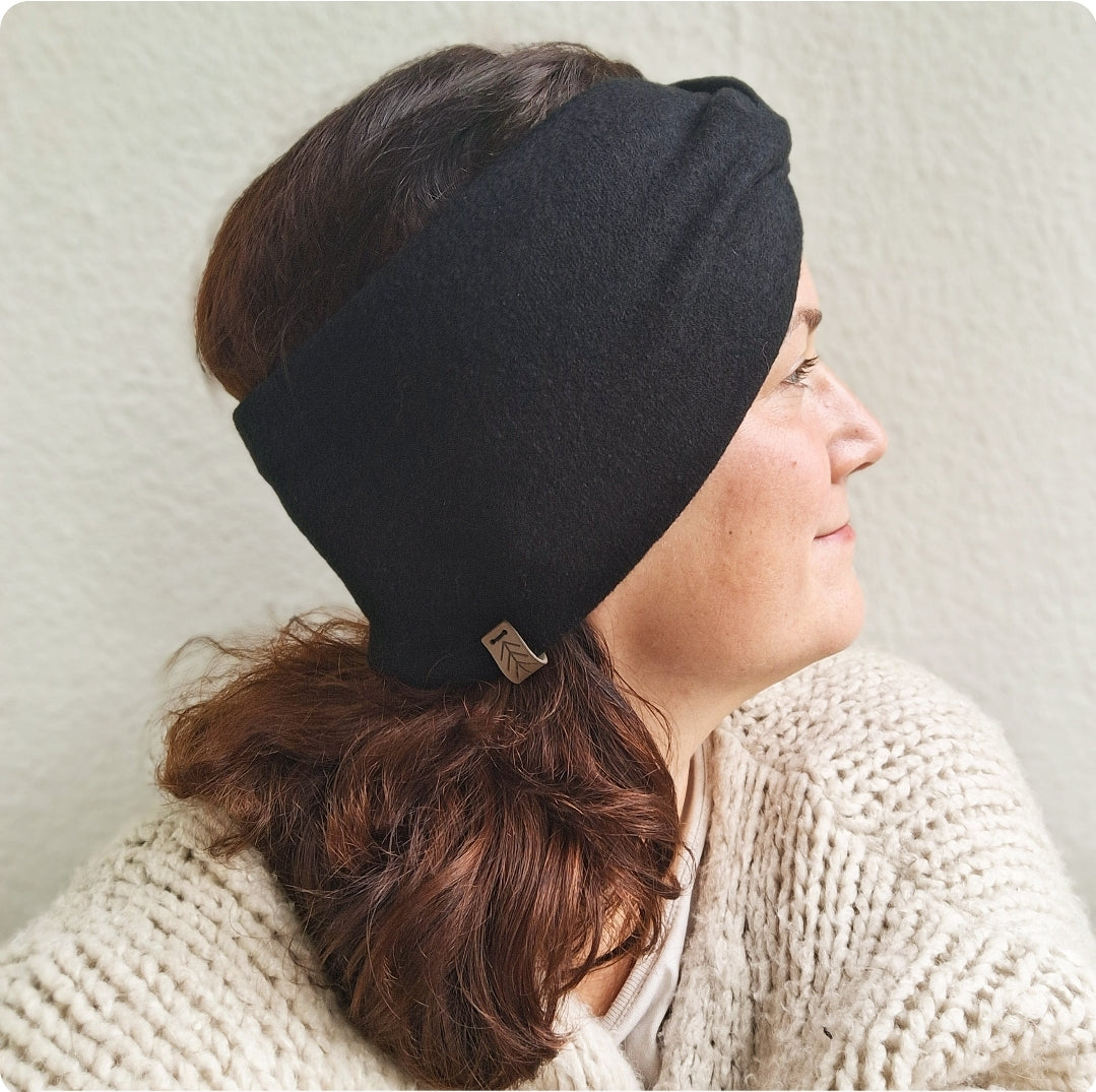 Pannband / halvturban i 100% ekologisk obehandlad ull som håller huvudet varmt och skyddar mot vind och kyla samt håller håret borta från ansiktet.